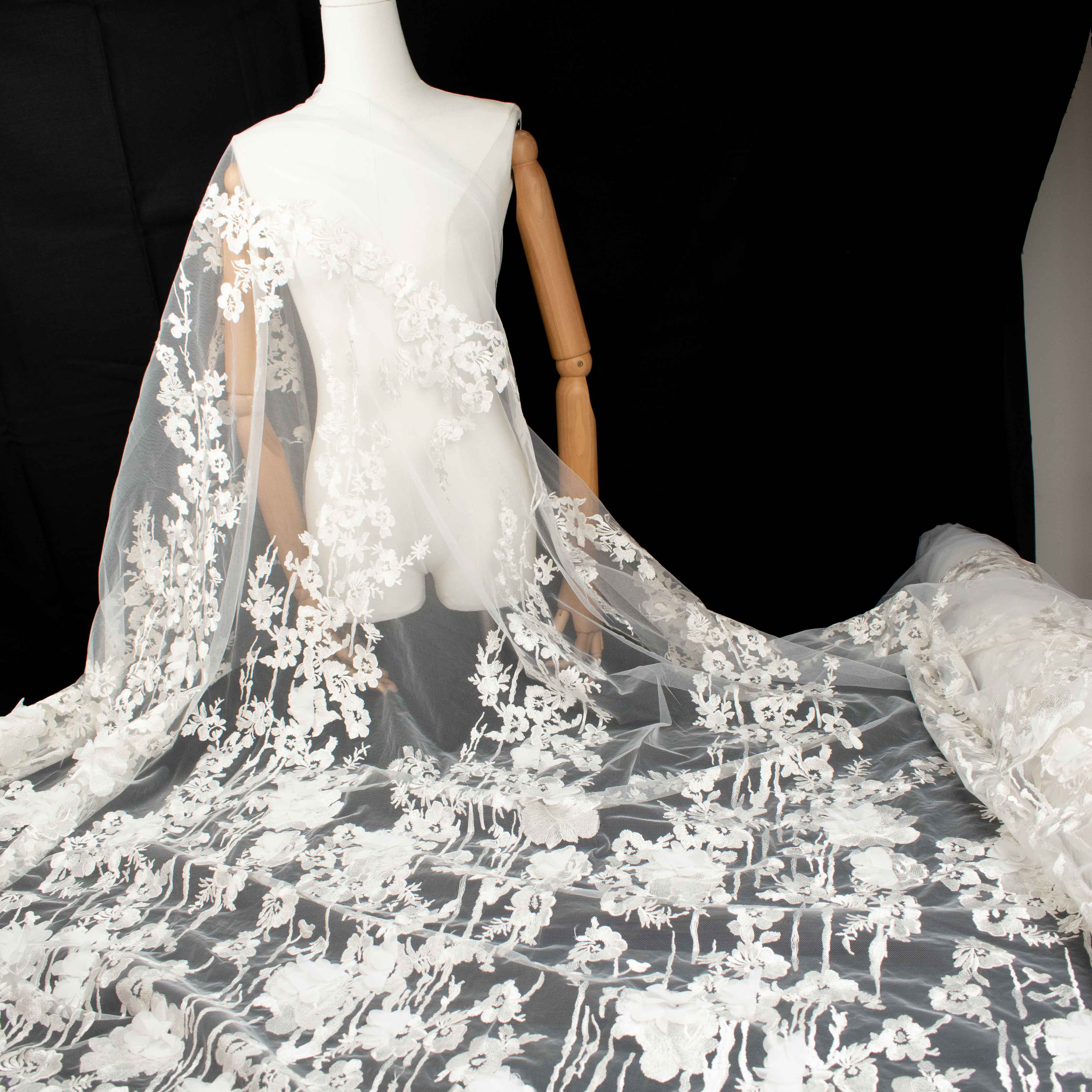 3D Flower Embroidered Lace Ivory