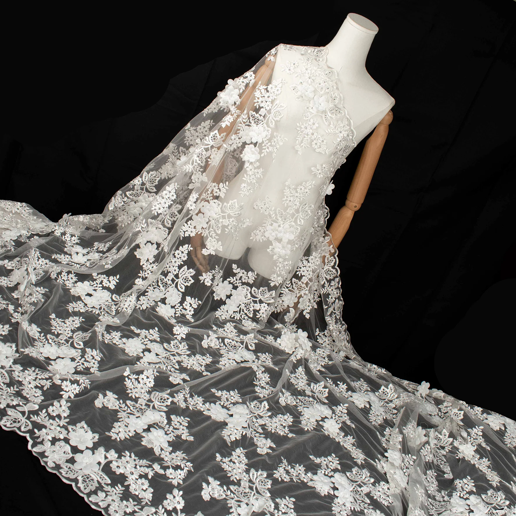 3D Flower Pearl Diamante Embroidery Lace White Design-12