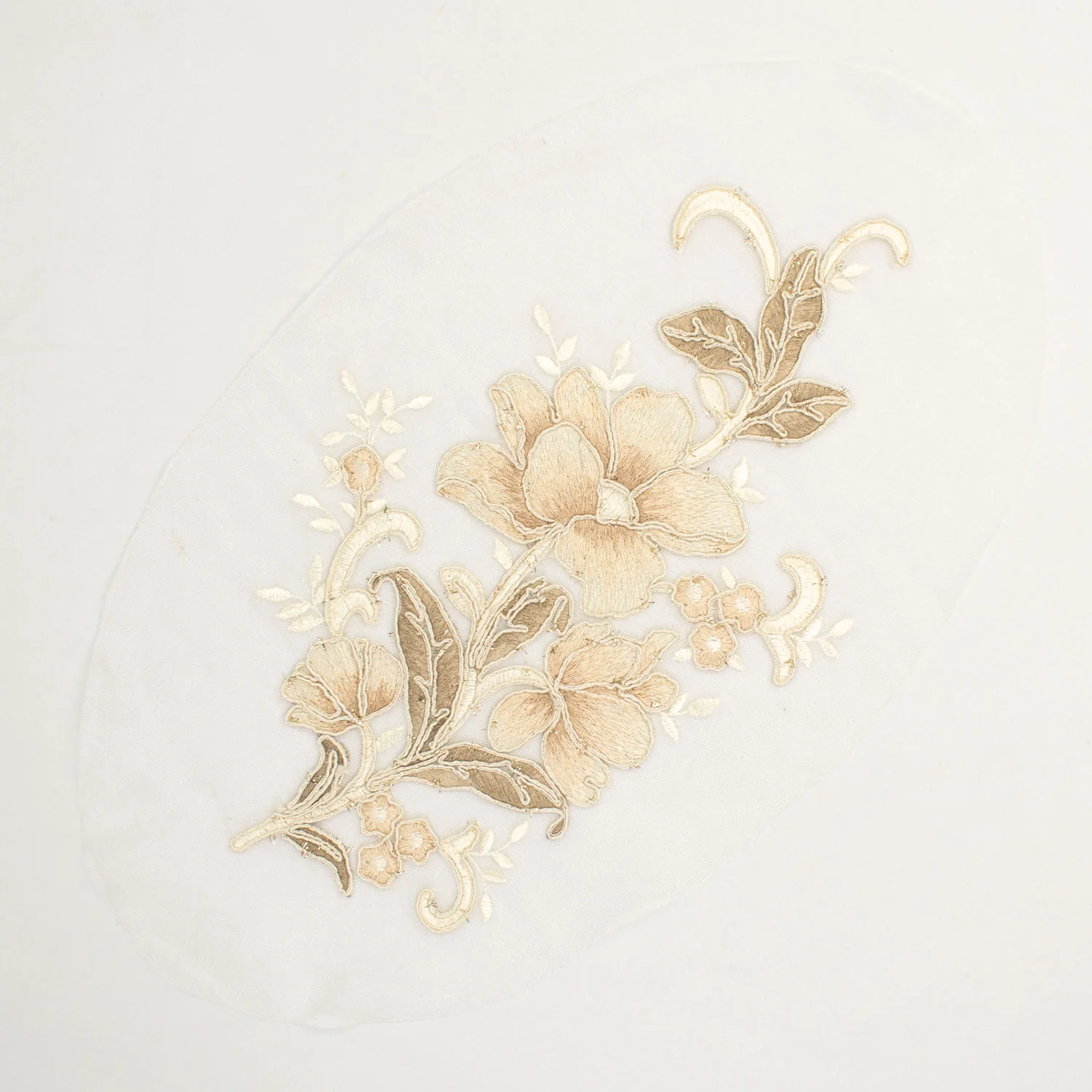 Beige Glitter Floral Cord Embroidered Motif