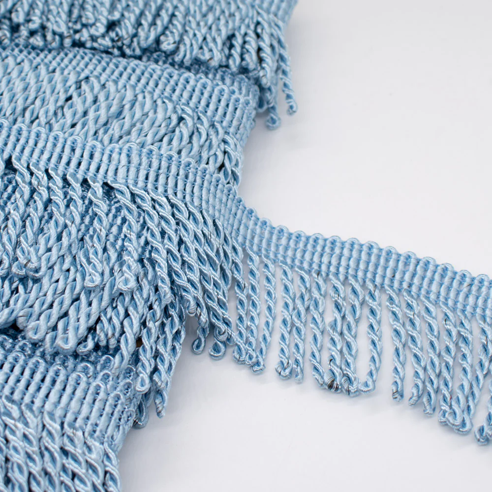 This 53mm Bullion Fringe Trim adds a rich, decorative finish to any project. The twisted cords and smooth woven header create an elegant drape with a subtle sheen, making it ideal for both classic and contemporary interiors. A simple way to elevate furnishings with texture and movement.