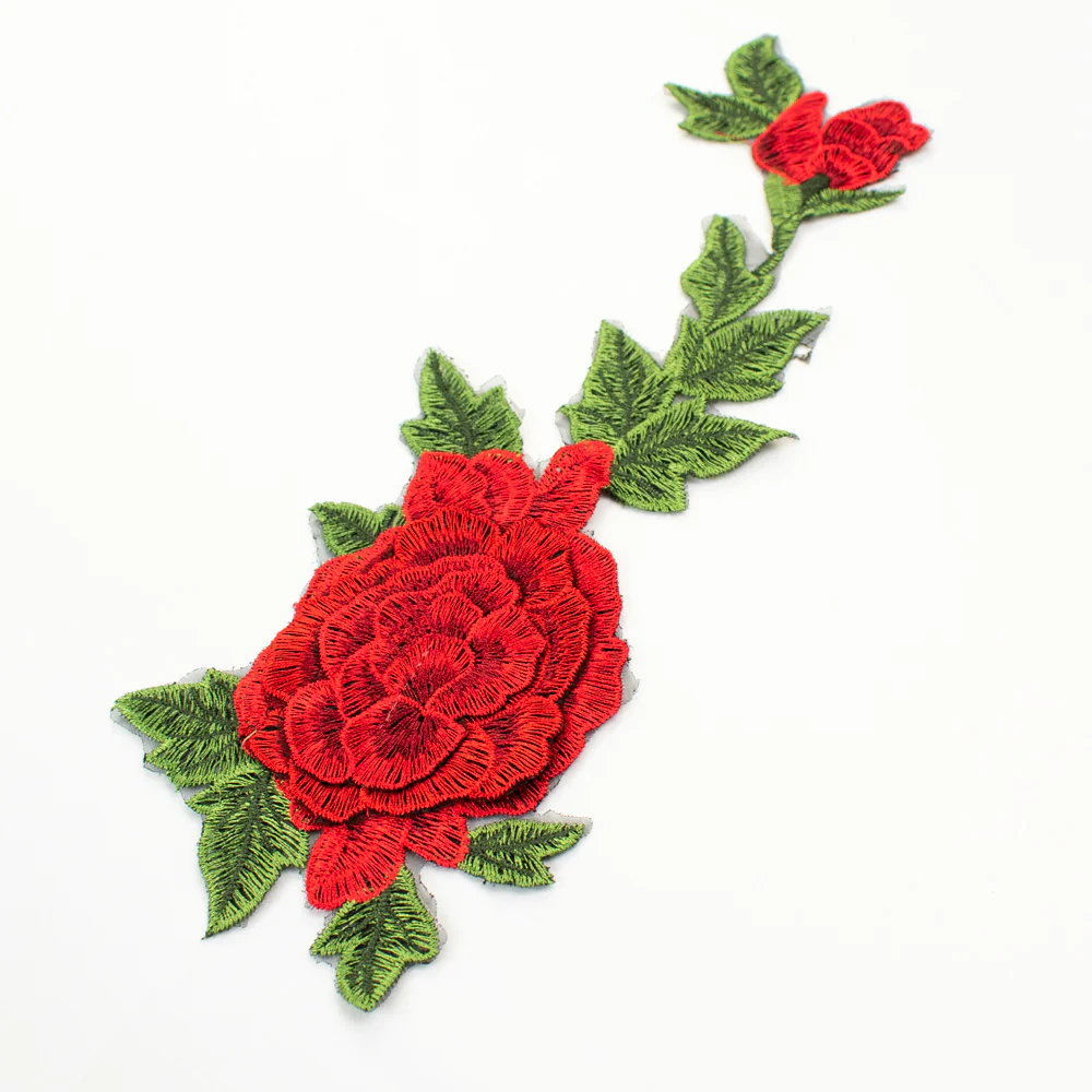 Trellis Red Rose Flower Embroidered Applique Sew On Motif